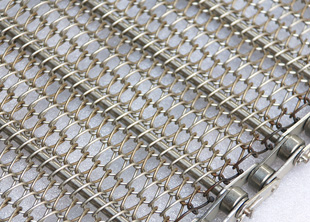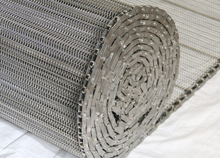 清洗輸送線上的載重非常的輕,客戶特意要求使用小滾珠金屬鏈條網帶,小滾珠鏈條節距為19.05毫米,采用鏈桿直徑為5毫米的鋼桿組裝。